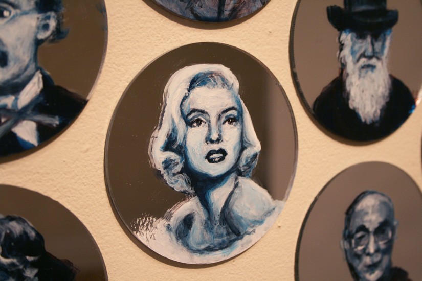 | Detail: Marilyn Monroe, Jewel Net of Indra installation, 1000 acrylic mirrors with 325 acrylic painted portraits, Aug. 2011 - present, photo: Gareth Bate. Return to Installation |Artist Statement and List of Names| Press |