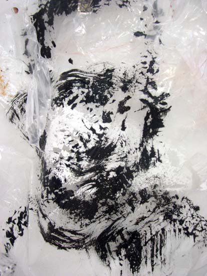 | Detail: Plastic Paintings: Self-Portraits Installation at 401 Richmond St. W., Toronto, acrylic & ink on plastic tarp, Oct. 07 - Feb 08. Return to Installation Menu | Return to Self-Portraits Menu | Artist Statement |