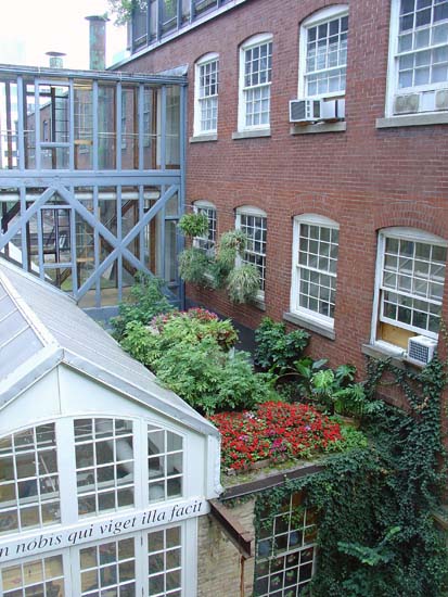 The roof top garden and stunning court yard are secret, (yet public) Toronto gems. The building is based on urban ecologist Jane Jacobs philosophy of "New ideas require old spaces" and the need for mixed use and diversity.