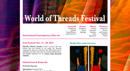 I'm actively involved with Oakville's festival of contemporary fibre art. I designed their new website and every week I publish a new "Weekly Fibre Artist Interview" with a local, national or international fibre artist. We are working towards the next festival in 2012.